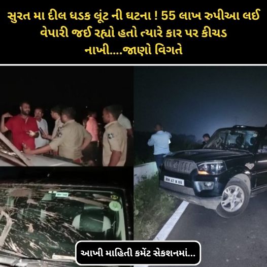 સુરત મા દીલ ધડક લૂંટ ની ઘટના ! 55 લાખ રુપીઆ લઈ વેપારી જઈ રહ્યો હતો ત્યારે કાર પર કીચડ નાખી….જાણો વિગતે