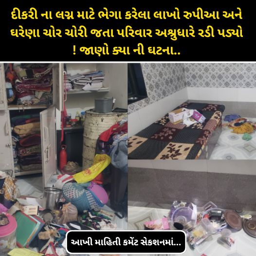 જ્યારે દશરથભાઈ પટણીએ થોડાક મહિનાઓ બાદ પોતાની દીકરીના લગ્ન હોવાથી પૈસા ભેગા કર્યા હતા અને સોના ચાંદીના દાગીનાની ખરીદી પણ કરી હતી. પરંતુ તેમના જ ઘરેથી તસ્કરો હાથ ફેરો કરીને ફરાર થઈ જતા પરિવાર અશ્રુધારે રડી પડ્યો હતો. કડી પોલીસને જાણ કરાતા કડી પોલીસ ઘટના સ્થળે દોડી આવી કાર્યવાહી હાથ ઘરી હતી.