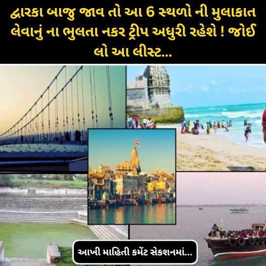 આપણે જાણીએ છે કે જગતમાં પવિત્ર સાતપુરીઓમાં પણ દ્વારકા પણ છે. આ નગર ભગવાન શ્રી કૃષ્ણએ વસાવ્યુ અને આજે લોકો અહીંયા તેમના દર્શન કરવા પધારે છે. આજે અમે આપને જણાવીશું કે દ્વારકા આવો ત્યારે તમે બીજે ક્યાં ક્યાં ફરવા જઇ શકો છો. ગોમતી નદીના કિનારે આવેલ દ્વારકા શ્રી કૃષ્ણ ભગવાનની સાક્ષત અનુભુતી કરાવે છે. શ્રી કૃષ્ણના મ્રૃત્યુ બાદ તેમણે વસાવેલી દ્વારકા નગરી સમુદ્રમાં ગરકાવ થઈ ગઈ પણ આજનું દ્વારકા મનમોહક છે અને અનેક જોવાલાયક સ્થળો આવેલા છે.