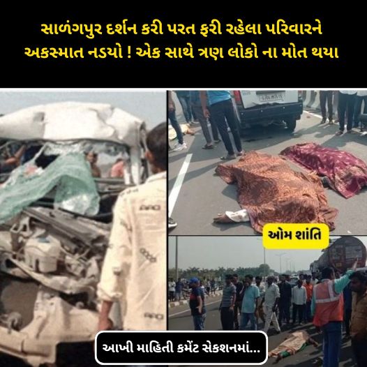 ગુજરાતમાં દિવસેને દિવસે અનેક પ્રકારના અક્સ્માતના બનાવો બને છે, ત્યારે હાલમાં જ એક સૌથી દુઃખદાયી બનાવ બન્યો છે. સૂત્ર દ્વારા જાણવા મળ્યું છે કે, કષ્ટભંજનદેવના દર્શન કરીને આવતા પરિવારને અકસ્માત નળ્યો. આ ભયંકર અકસ્માતમાં એકી સાથે પરિવારના ત્રણ સભ્યોનું નિધન થઇ ગયું છે, આ બનાવ કઈ રીતે બન્યો તે અંગે અમે આપને સંપૂર્ણ માહિતી જણાવીએ. આપણે જાણીએ છે કે, અનેક વખત કોઈ શુભ પ્રસંગે આવતા-જતા કે દેવસ્થાન દર્શન કરવા-જતી કે આવતી વખતે આવા અશુભ બનાવો બનતા હોય છે.