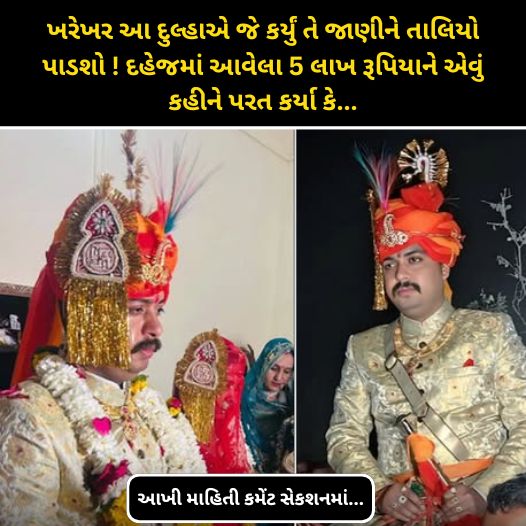 ત્યારે આપણે દહેજ કેવી રીતે સ્વીકારી શકીએ?” તેમણે આશીર્વાદ તરીકે ફક્ત એક નારિયેળ અને ₹1 નો સિક્કો સ્વીકાર્યો. આ ઘટના રાજસ્થાનના એક નાના ગામની છે.