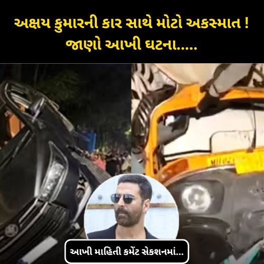 સોમવારે, બોલિવૂડ સુપરસ્ટાર ખિલાડી કુમારની સુરક્ષા કારને અકસ્માત થયો. આ ઘટના ત્યારે બની જ્યારે અભિનેતા અને તેમની પત્ની ટ્વિંકલ ખન્ના એરપોર્ટથી જુહુમાં તેમના ઘરે પરત ફરી રહ્યા હતા. એક કાર પાછળથી એક ઓટો-રિક્ષાને ટક્કર મારી, જેના કારણે રિક્ષા પલટી ગઈ અને અક્ષય કુમારને લઈ જઈ રહેલા વાહન સાથે અથડાઈ.