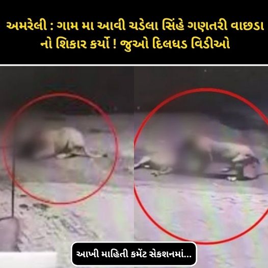 જો આ અંગે વિગતે વાત કરવા મા આવે તો અમરેલી જિલ્લાના જાફરાબાદ તાલુકાના લોઠપુર ગામ મા આ ઘટના બની હતી જેમા એક સિંહે પલક ના પલકારે આરામ કરતા વાછરડા નો શિકાર કરી લીધો આ સમગ્ર ઘટના નજીક ના લાગેલા cctv મા કેદ થઈ હતી. આરામ ફરમાવી રહેલા વાછરડાની સિંહે પાછળથી દોડ મૂકી છલાંગ લગાવી શિકાર કર્યો હતો. શિકાર માટે સિંહે તરાપ મારી વાછરડાને ગળાના ભાગે પકડી લીધું હતું, એ બાદ એને પોતાની સાથે લઈ ગયો હતો.